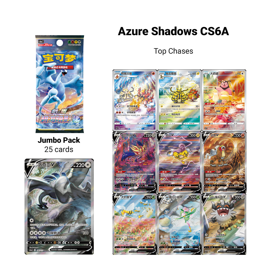 - 3x Jumbo Booster Packs – CS6b “Azure Shadows – Pursuit”